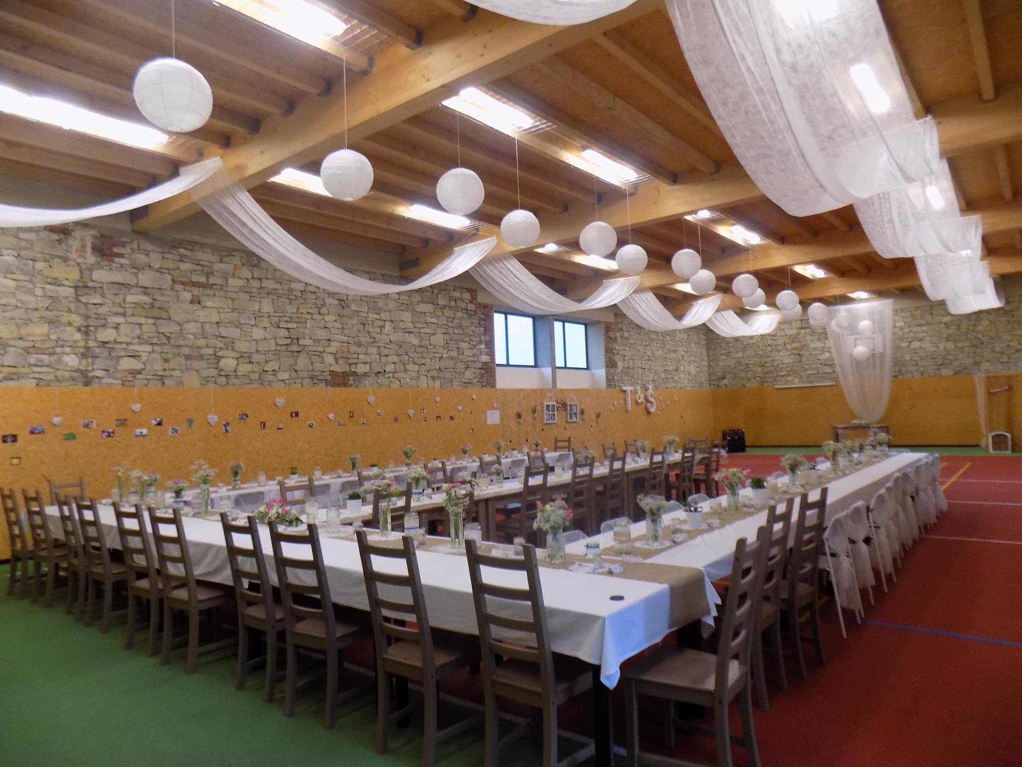 Pro společenské akce většího rozsahu je možno využít víceúčelovou halu o rozměrech 22x11 metrů s vlastním sociálním zázemím, WIFI. Halu je v případě pěkného počasí možno velkými posuvnými vraty propojit se zahradou a přímo navazující zpevněnou plochu s posezením a přípravou pro gril a výčepní zařízení – ideální kombinace pro svatby, oslavy, firemní večírky, turnaje apod. Upravená okrasná zahrada jako vhodný prostor pro svatební obřad.