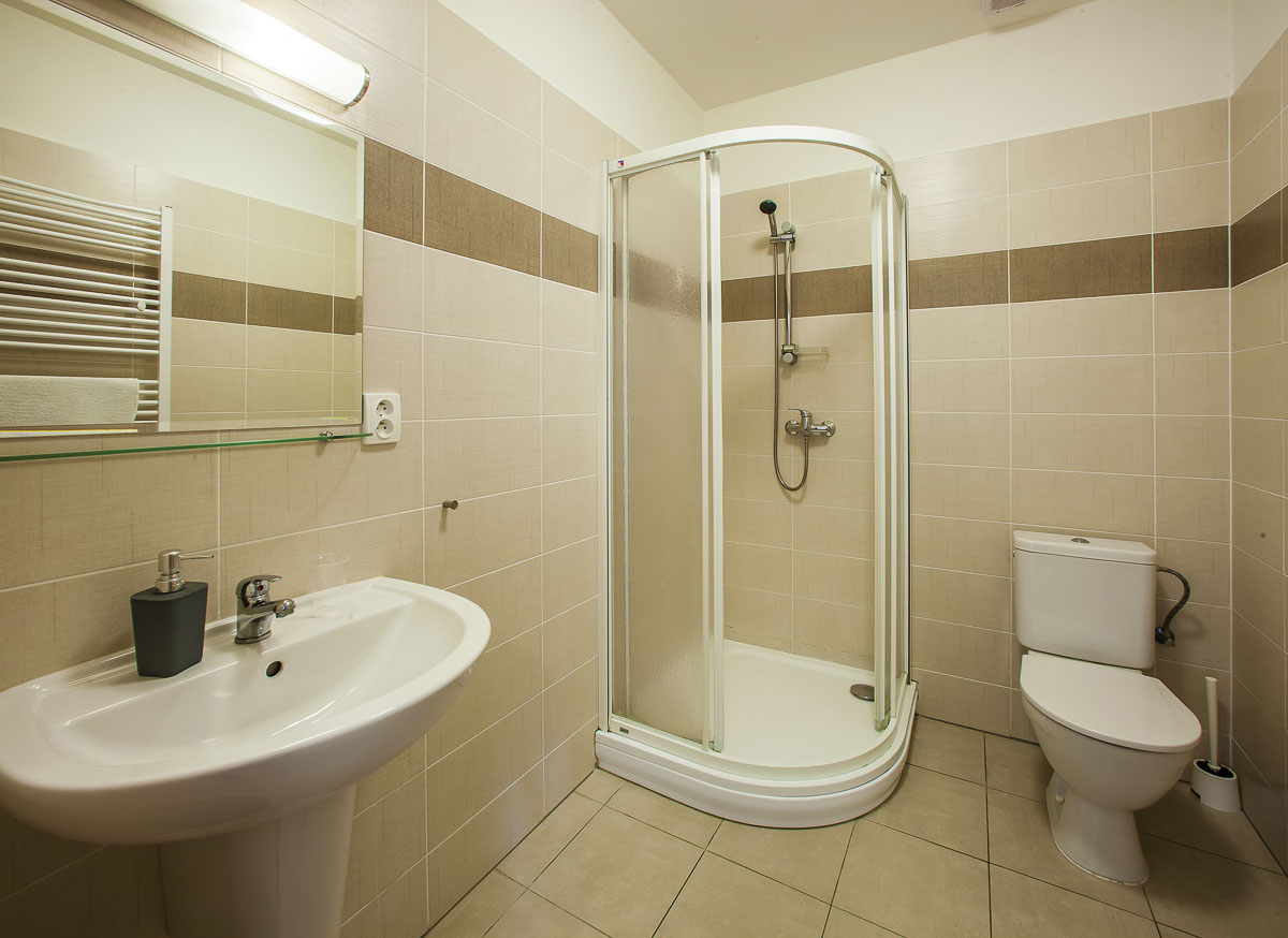 A) apartmán s vl. sociálním zařízením a plně vybavenou kuchyňskou linkou,
